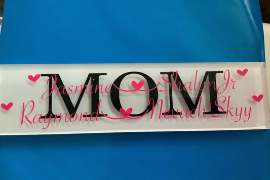 3x12 glass tile plaque with stand with vinyl wording. Can be any variation of Mom,...